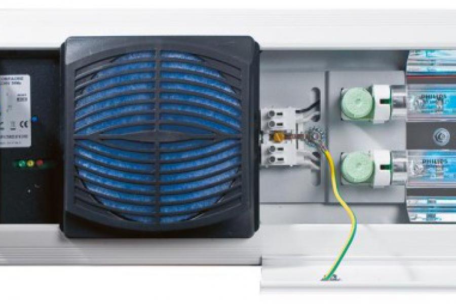 Successivamente l'aria prosegue ed entra in contatto coi tubi a vapori di mercurio che, grazie all'emissione di radiazioni UV-C ed ad uno schermo che le riflette e concentra, espletano la massima azione germicida.